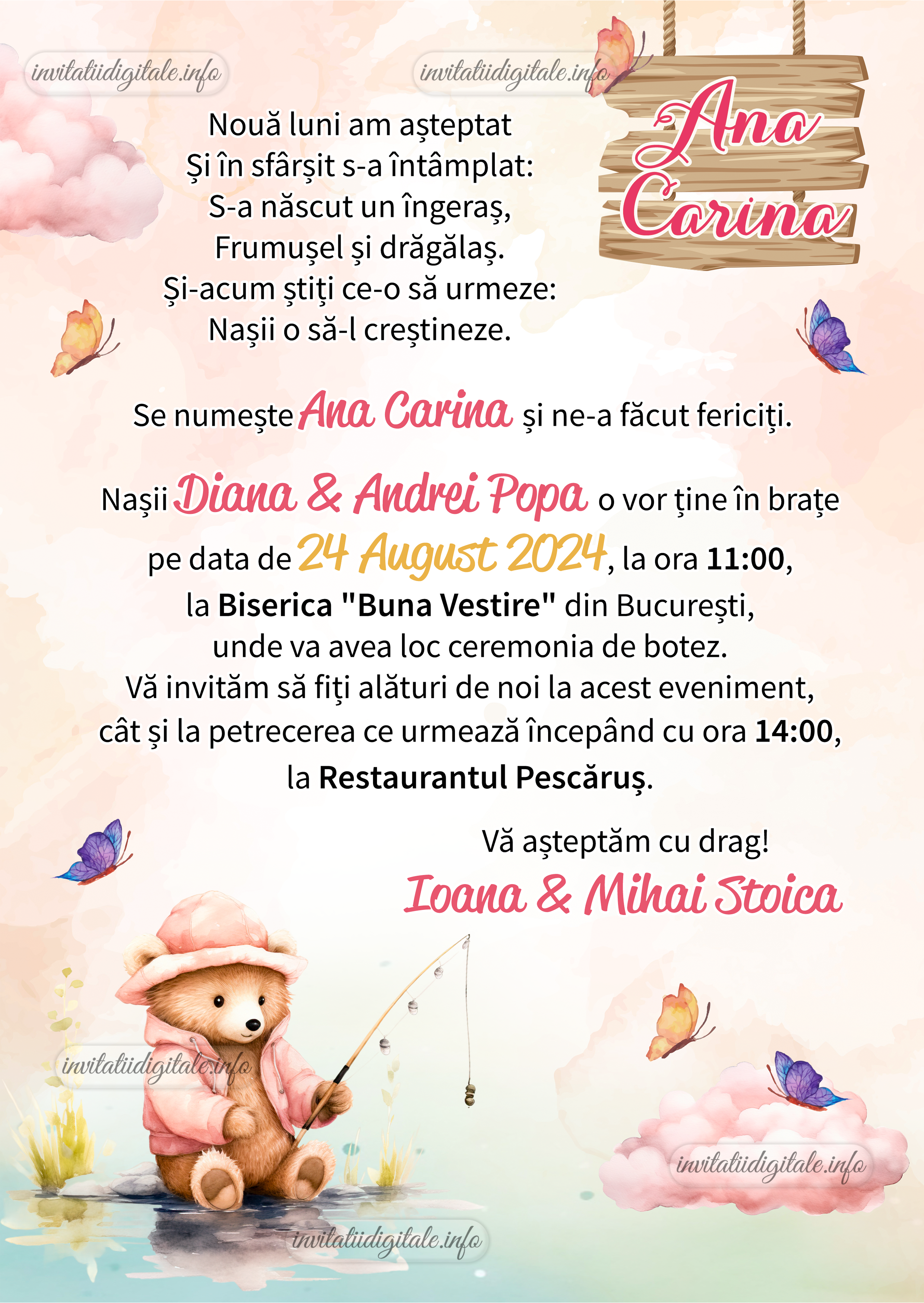 Invitatie digitala botez fetite – Ursulet – IB-15