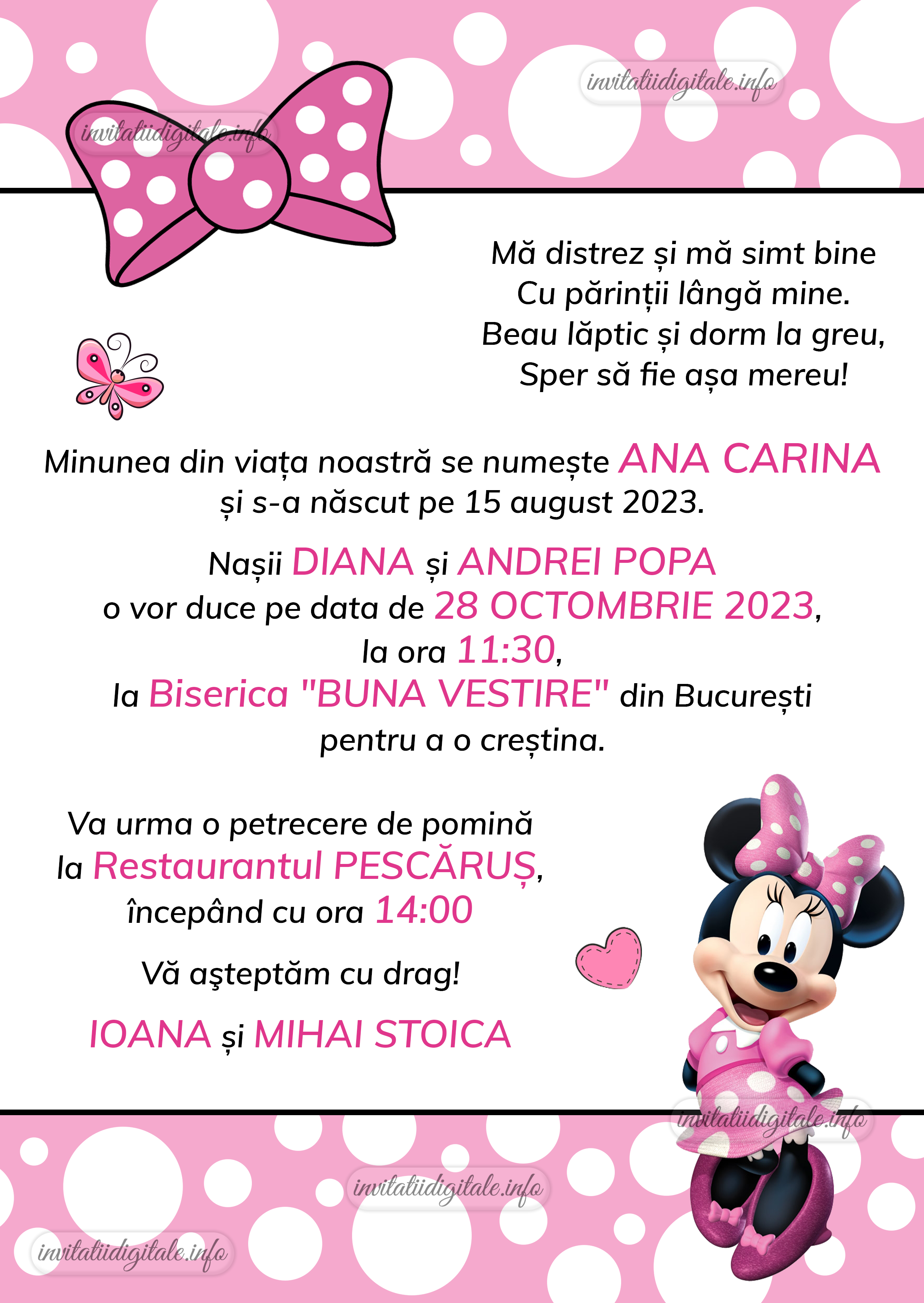 Invitatie digitala botez fetite – Minnie Mouse – IB-02