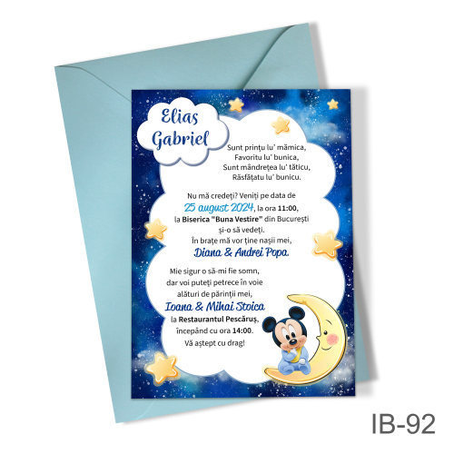 Invitatii botez baieti cu plic colorat – Mickey Mouse – IB-92