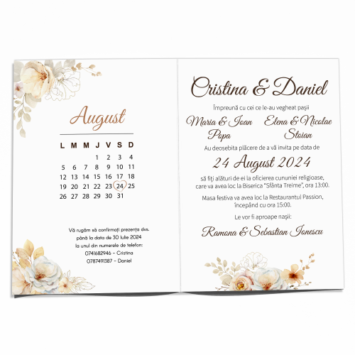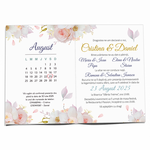 Invitatii nunta clasice – Decoratiuni florale – INC-39