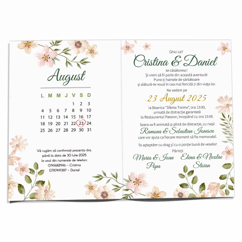 Invitatii nunta clasice – Decoratiuni florale – INC-38