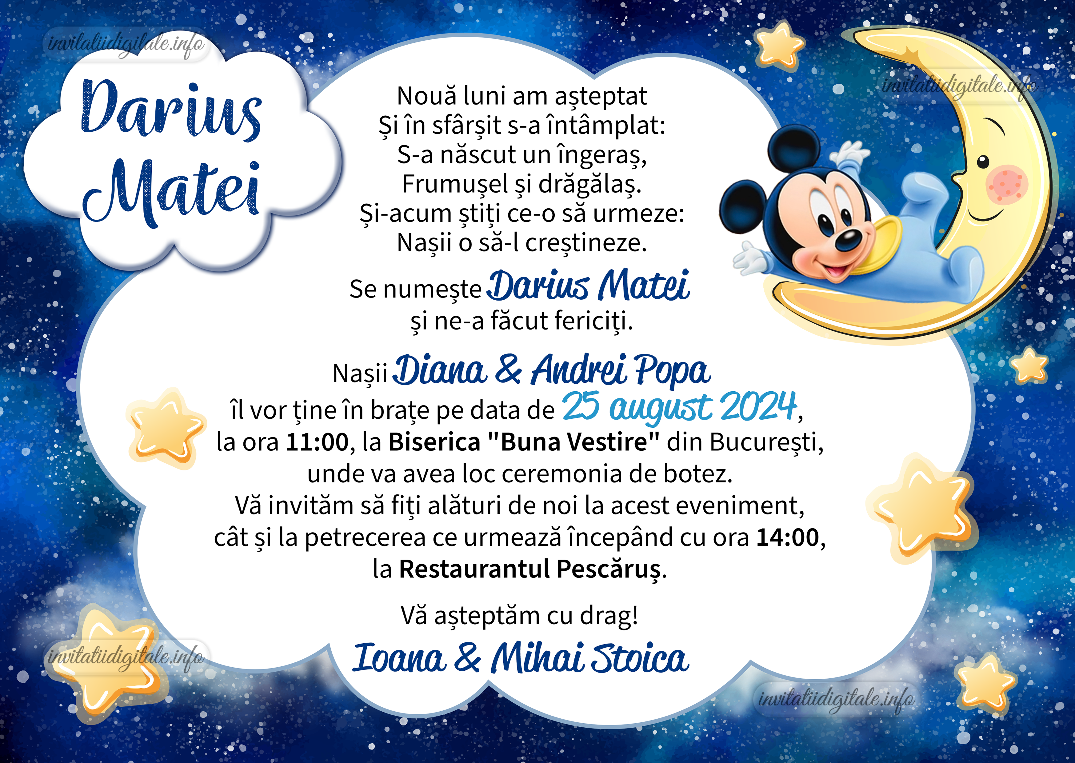 Invitatie digitala botez baieti – Mickey Mouse – IB-103