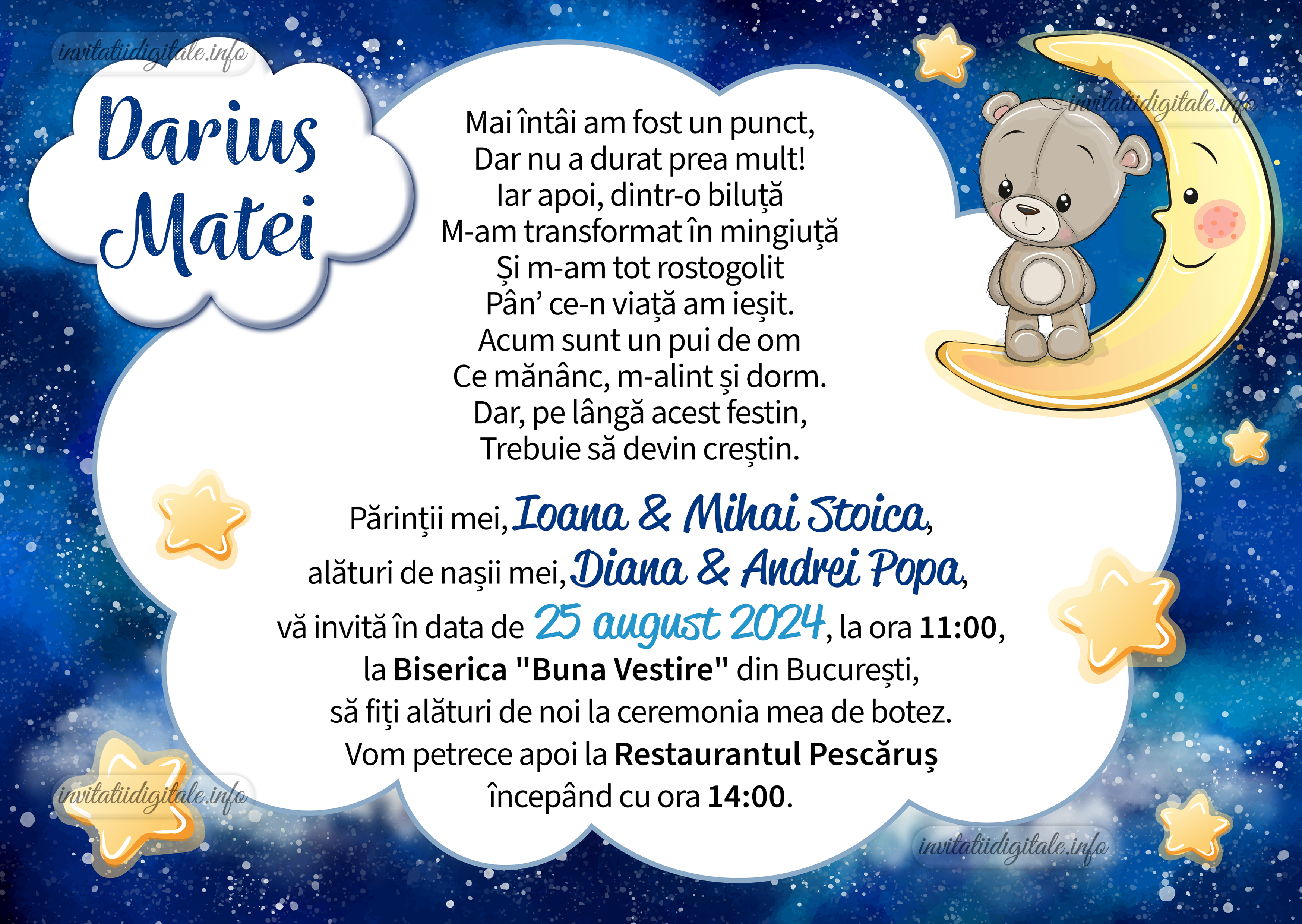 Invitatii digitale botez baieti