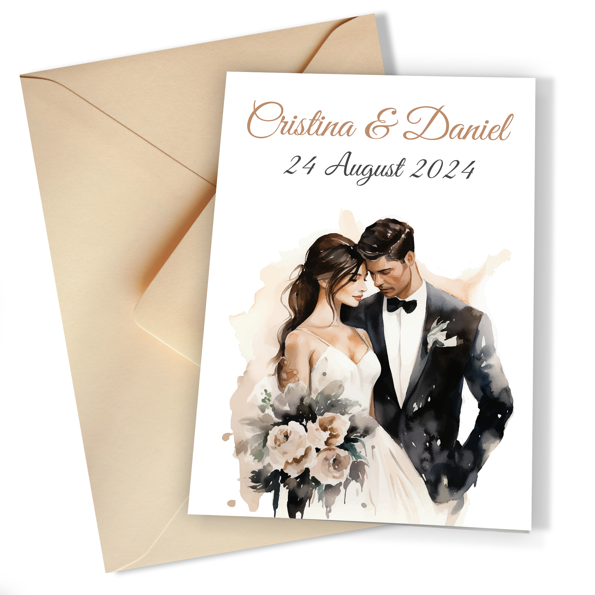 Invitatii nunta clasice cu plic Ivoire – Mire si mireasa – INC-11