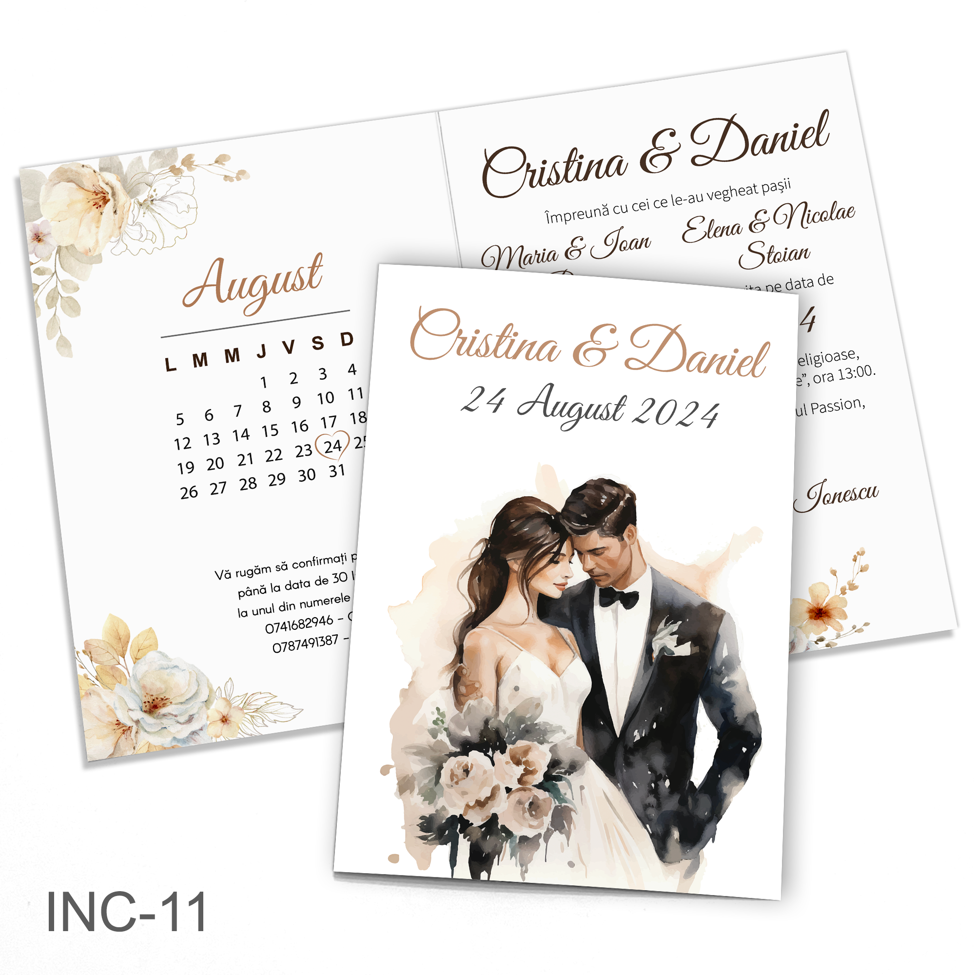 Aceste invitații reprezintă alegerea perfectă pentru cuplurile care doresc să își anunțe ziua specială într-un mod care reflectă eleganța, dragostea și bucuria pe care o împărtășesc. Invitațiile voastre vor fi, fără îndoială, un preludiu memorabil al celebrării care urmează.