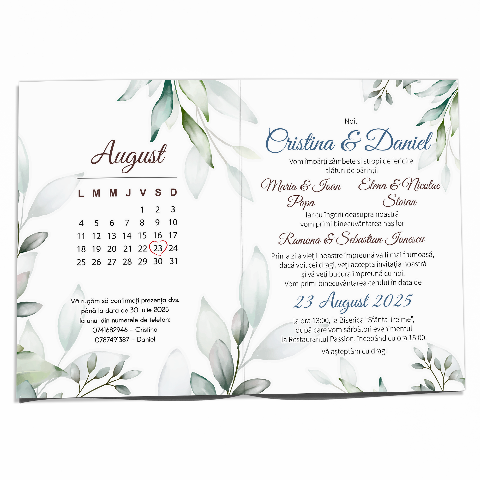 Dupa ce primim comanda, in 24-48 ore, veti primi pe WhatsApp sau pe email modelul de invitatie personalizata cu textul Dvs. pentru a verifica si confirma datele.