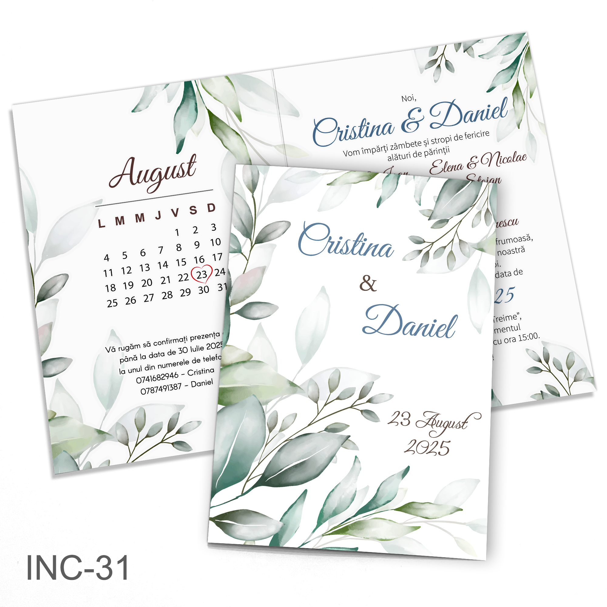 Invitatii nunta clasice cu plic Verde Padure – Decoratiuni florale – INC-31