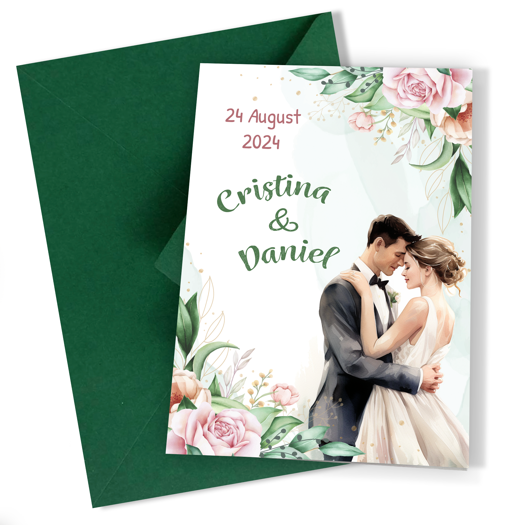 Invitatii nunta clasice cu plic Verde Padure – Mire si mireasa – INC-10