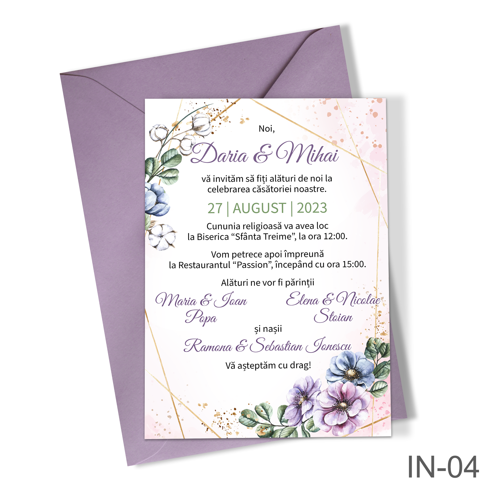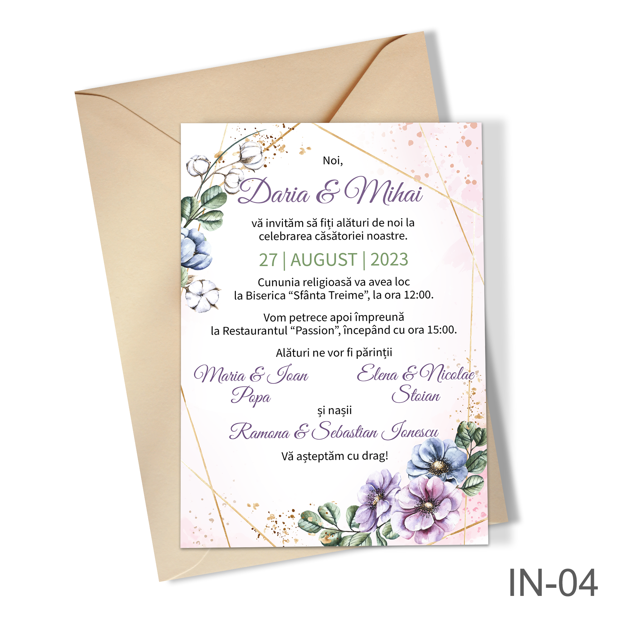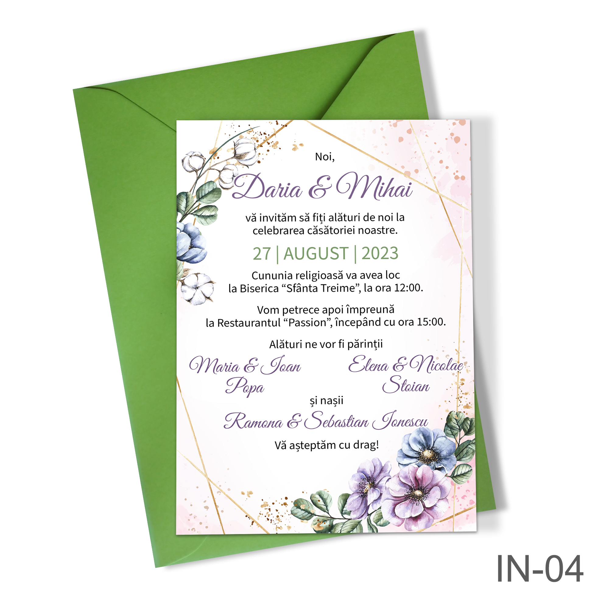 Invitatii nunta cu decoratiuni florale – IN-04