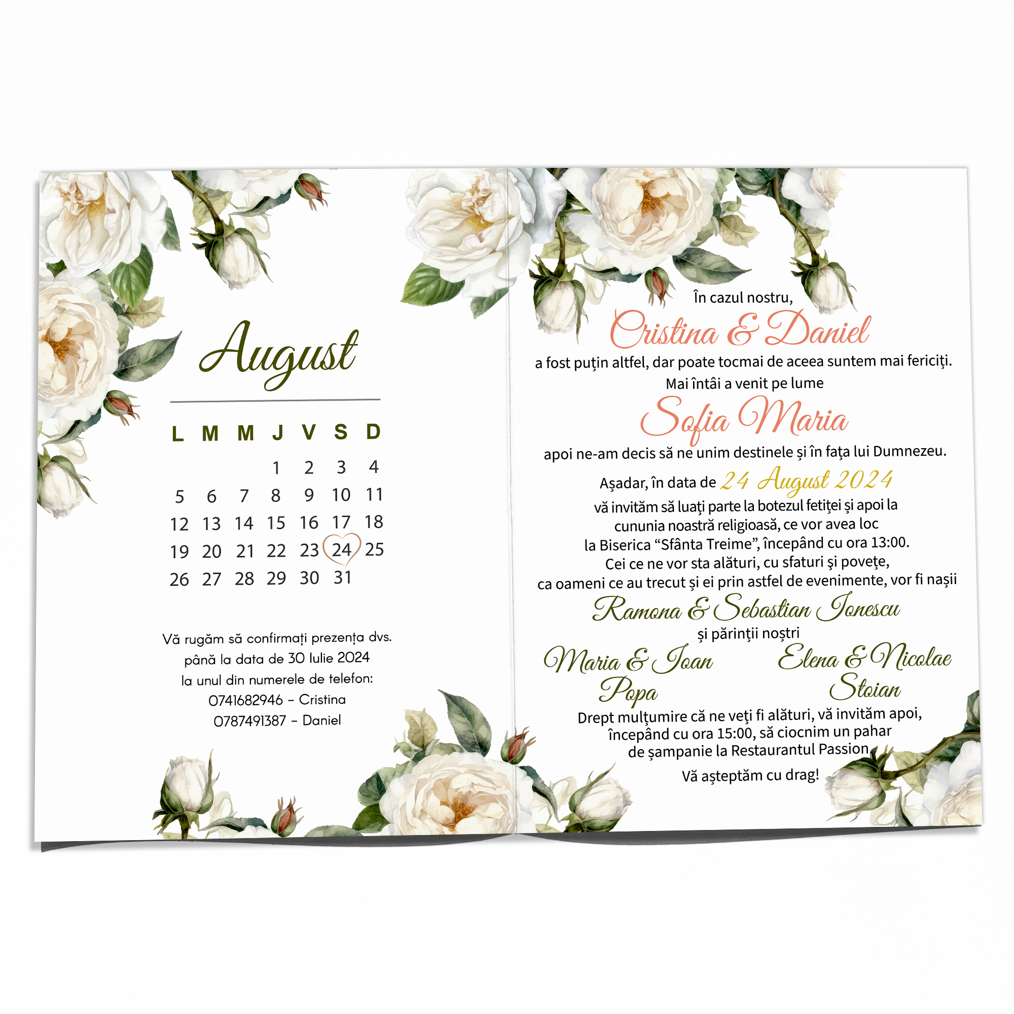 Dupa ce primim comanda, in 24-48 ore, veti primi pe WhatsApp sau pe email modelul de invitatie personalizata cu textul Dvs. pentru a verifica si confirma datele.