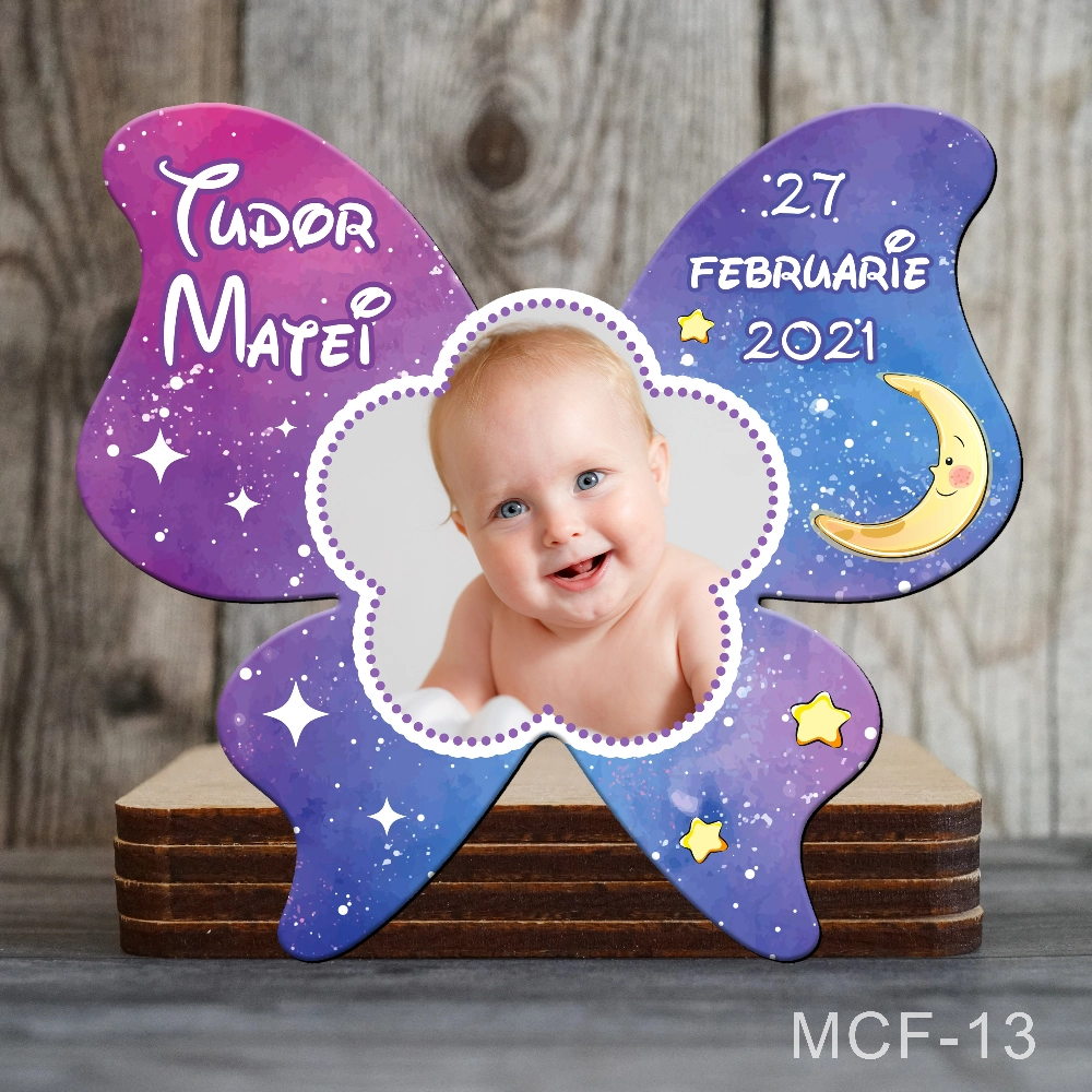 - Personalizare: Include o fotografie adorabilă a bebelușului, numele acestuia și data evenimentului, toate printate în culori vii pe un magnet durabil.